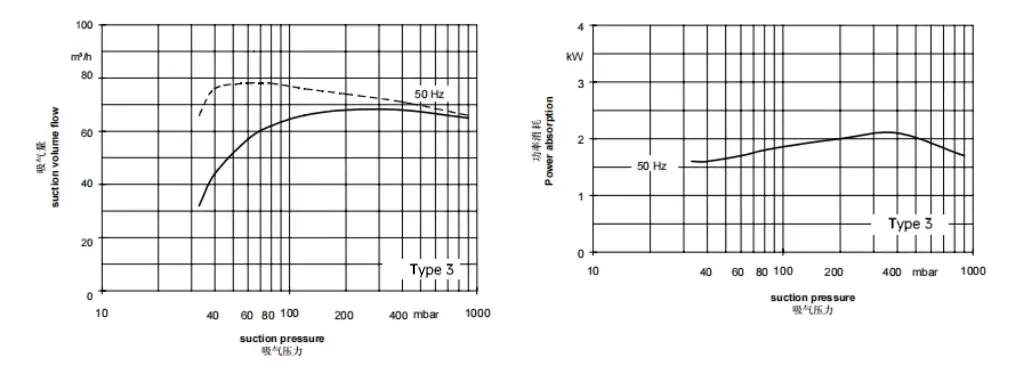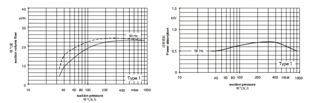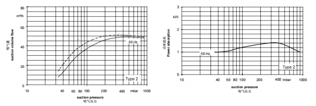 - Suction volume ranges from 24 m³/h to 280 m³/h.
